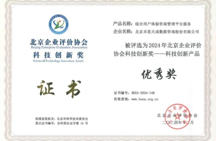 卓思榮獲“2024年北京企業(yè)評價協(xié)會科技創(chuàng)新獎”