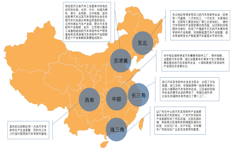 圖5:我國(guó)汽車零部件產(chǎn)業(yè)集群分布情況,資料來(lái)源:根據(jù)公開資料整理