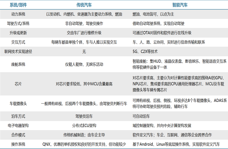 表1:智能汽車與傳統(tǒng)汽車的區(qū)別,資料來(lái)源:華經(jīng)產(chǎn)業(yè)研究院