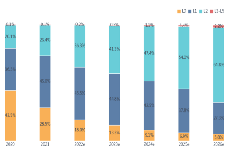 圖8:全球各級(jí)別智能汽車滲透率,數(shù)據(jù)來(lái)源:國(guó)海證券研究所