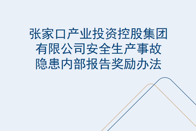 張家口產(chǎn)業(yè)投資控股集團有限公司安全生產(chǎn)事故隱患內(nèi)部報告獎勵辦法