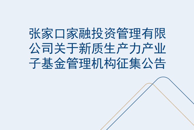 張家口家融投資管理有限公司關(guān)于新質(zhì)生產(chǎn)力產(chǎn)業(yè)子基金管理機構(gòu)征集公告