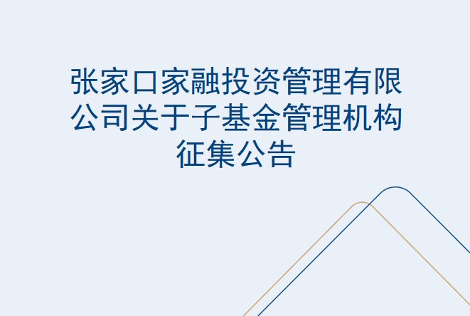 張家口家融投資管理有限公司關(guān)于子基金管理機構(gòu)征集公告